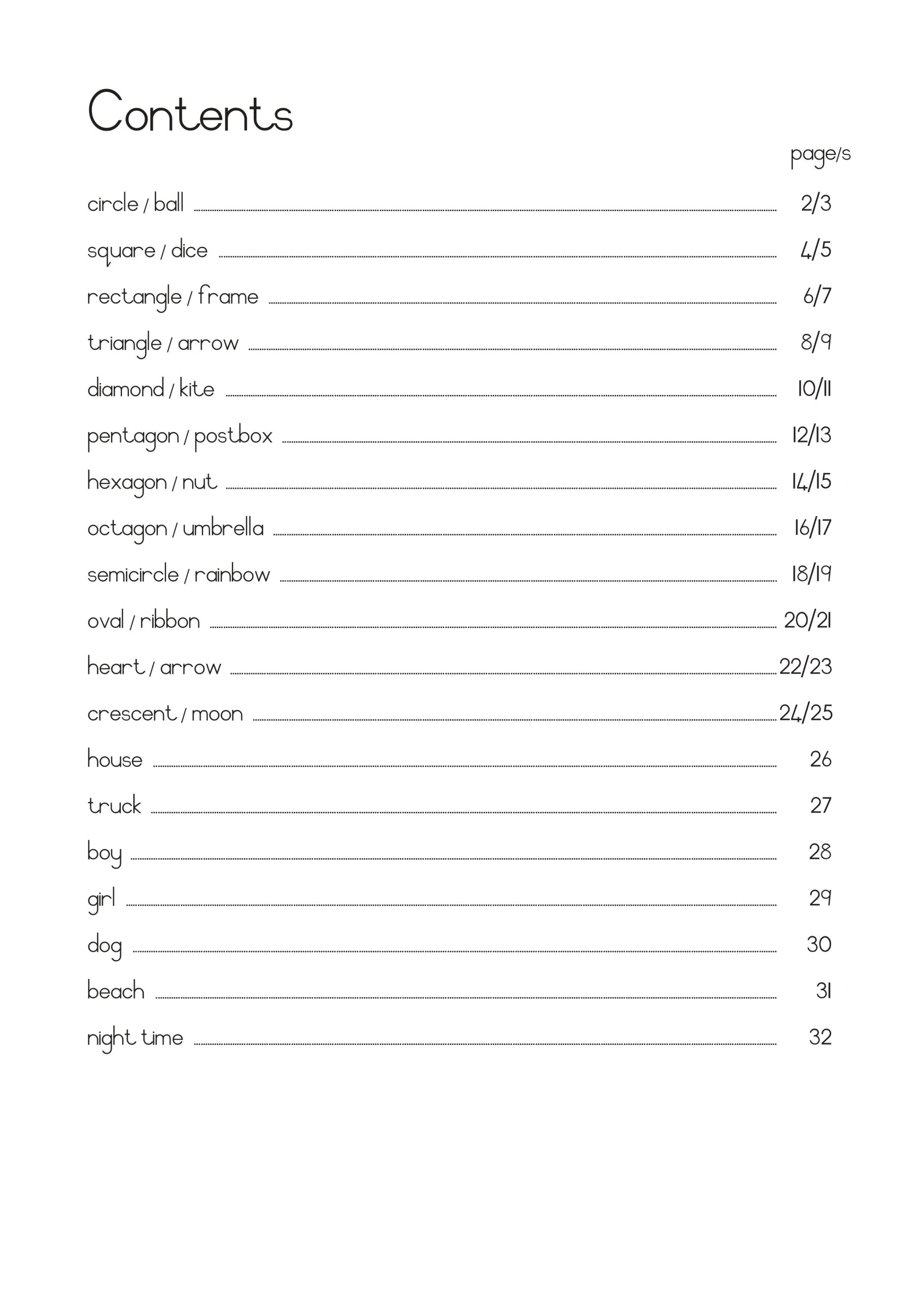 This tracing workbook satisfies many functions: the recognition and naming of shapes; identification of shapes in the environment; fine motor control/ hand-eye coordination/ figure-ground perception (and more) when tracing shapes.